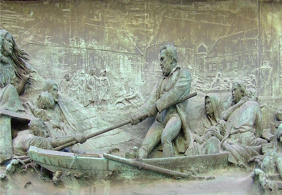 A Wesselényi-dombormű a pesti ferences templom északi falán. Holló Barnabás alkotása (1900)